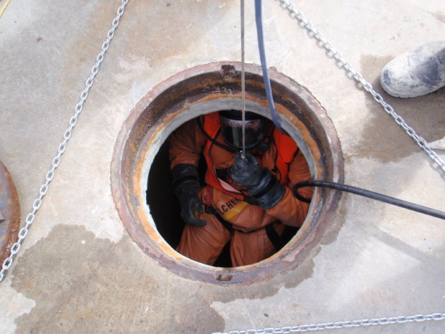 Carrying out a confined spaces risk assessment.